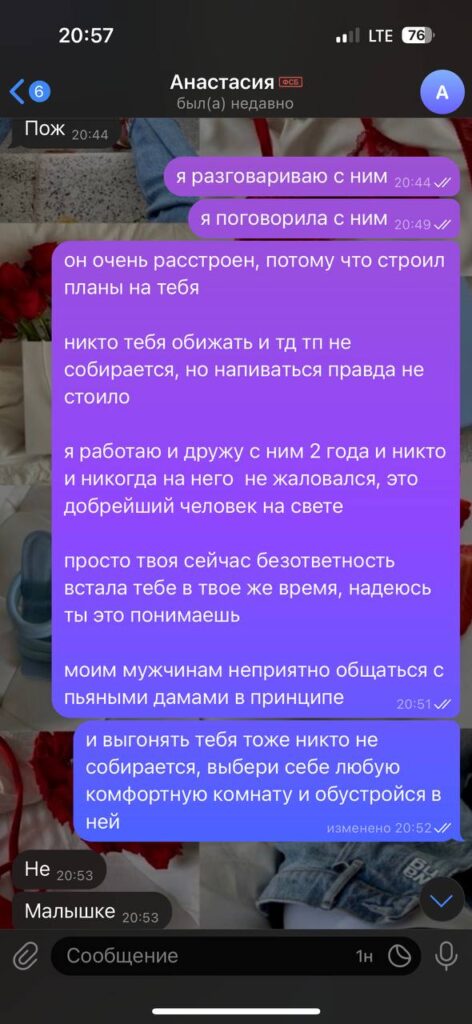 Вывод: хамка, алкашка, манипулятор, срыв темы, чс, не соответствует фото