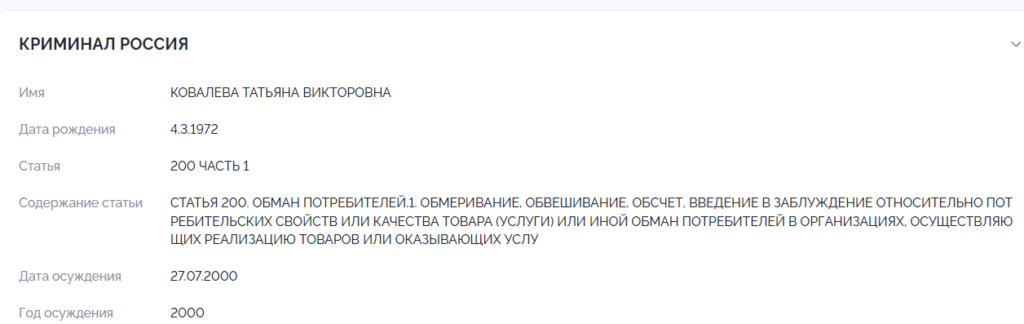 КОВАЛЕВА ТАТЬЯНА ВИКТОРОВНА 4.3.1972 – мать, уголовница