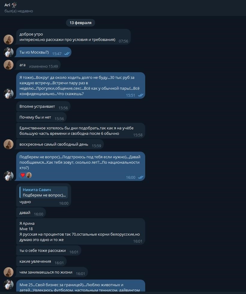 Арина долгое время сидела на сайте знакомств Atolin, где рассылала клиентам свои откровенные фото и видео, пытаясь продаться за деньги. Будучи готовой на любые эксперименты в сексе, она охотно шла на встречи с клиентами, включая МЖМ и другие экзотические формы. Все шло гладко, пока один из клиентов не слил её материалы, и теперь её репутация находится под угрозой.