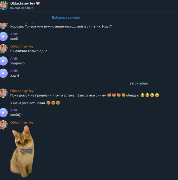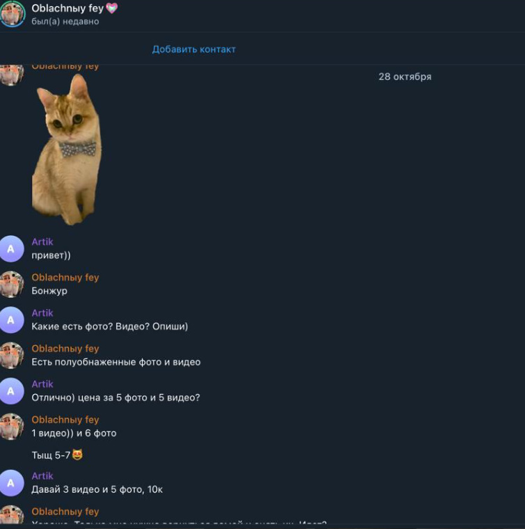Была не против рассылки и публикации, хотя могла удалить за сумму, которую за неделю тратит, так как считает что деньги важнее всего, а реклама ее секс-услуг принесет ей доп.заработок.